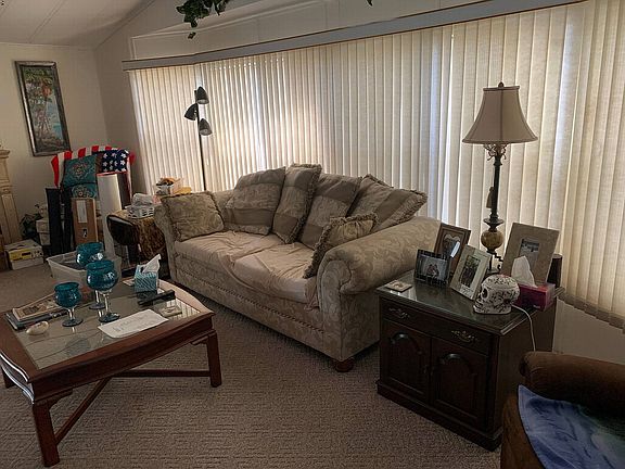 Lovely home featuring 2 bedrooms and 2 baths. Located on a corner lot and ready to move in! Large rooms with the dining area having a built-in hutch to display your special items. The kitchen has a small island. Bedrooms are nice and large. You will enjoy this corner lot with trees providing plenty of shade. Shed with washer and dryer hook up. This home is well kept and ready for a new owner. Large screen room on one side. This is a home you do not want to miss out on.