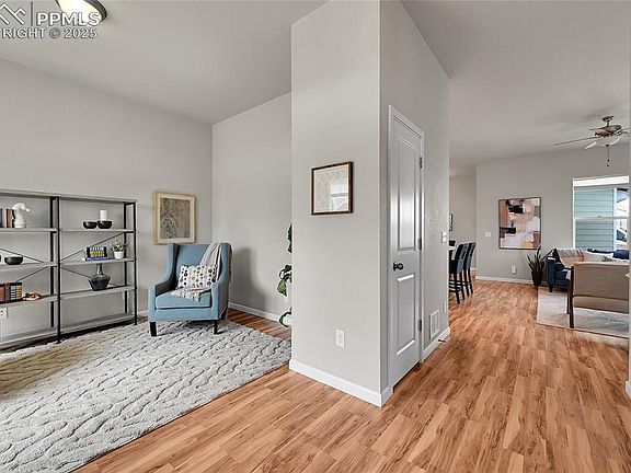 Mountain Views, City Lights & a Lifestyle You’ll Love in Gold Hill Mesa! Relax on the charming covered front porch and take in stunning sunsets with mountain views to your right and sparkling city lights to your left. This beautiful 4 bed, 4 bath home in the heart of Gold Hill Mesa offers style, space, and a vibrant community lifestyle. Inside, enjoy a bright, open floor plan with a stylish kitchen featuring stone countertops, a kitchen island, and a breakfast bar that flows into the sunny dining and living areas. The living space opens to a private outdoor patio, perfect for barbecues or a quiet morning coffee. Just steps from the backyard, you’ll find a large open space ideal for kids, pets, or weekend ball games. A flex space off the entry makes the perfect home office, art studio, or cozy sitting room. Upstairs, the primary bedroom exhibits city views, a large walk-in closet, and a spacious ensuite with dual sinks and a walk-in shower. Two more bedrooms upstairs (one with its own walk-in closet) provide comfortable space for family or guests along with a full bathroom and a super convenient laundry area. The finished basement offers a versatile game/family room, a full bath, bedroom, and ample storage. Other highlights include a 2-car garage with EV hookup, central A/C, and a pet-free home history, ideal for allergy-sensitive buyers. Class IV roof (2025). Don't miss this move in ready home located in the highly sought-after Gold Hill Mesa community—known for its community center, fitness facilities, music on the mesa events, and scenic trails—you’re also within walking distance to Bear Creek Park, Just minutes away from downtown Colorado Springs, Old Colorado City and Manitou Springs. This isn’t just a home—it’s a lifestyle. Come see for yourself why Gold Hill Mesa is one of Colorado Springs' most beloved neighborhoods!