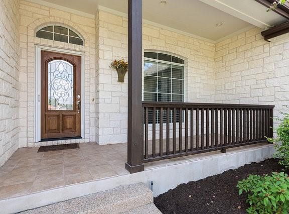 Single-level, all stone 3 bdrm, 2 liv plus office/3rd living space off primary bdrm on ~1 acre cul-de-sac in the desirable neighborhood of Vistas of Sawyer Ranch featuring low tax rate, comm pool, fishing lake and underground utilities. Extensive remodel with full interior/exterior paint, wood flooring, remodeled half bath, wrought iron fence, 10,000 sq ft back yard, fully irrigated, 10'x 20' shed and another exterior entrance storage/workshop/golf cart storage. New heat pump system 2021 with whole house air filter and dehumidifier. Tankless LP water heater. Solar panels on roof, covered pergola, security system with cameras. Plenty of room for a pool or tiny house. Highly acclaimed Dripping Springs schools and convenient to medical and Belterra retail. Fire station across from neighborhood entrance.