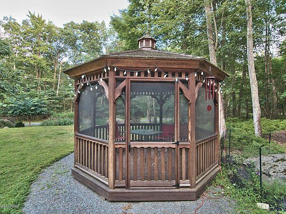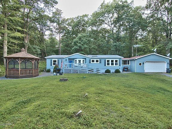 CASH ONLY! Are you looking for privacy & seclusion? Here it is..3 bedroom, 2 bath ranch on 2 acres with garage, gazebo & breezeway/sunroom, and 2 insulated sheds with electric. New roof installed 2015 along with new heating system/heat pump and central air conditioning. Living room has wood burning fireplace and has been piped for gas if you want to convert it. Plenty of cabinet space in the large kitchen with island and skylights for lots of natural light. Dues are only $300 and include road maintenance. Schedule your showing today for a look at this private setting.