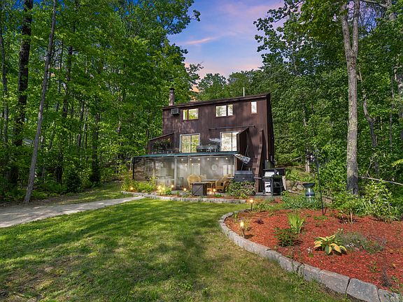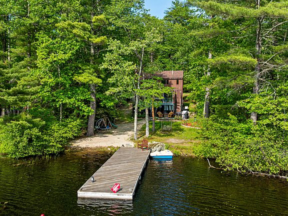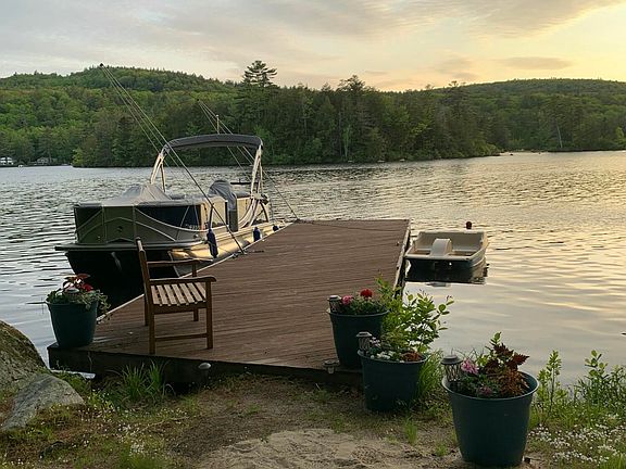 This beautifully updated year-round home on Horn Pond offers a perfect blend of comfort and lakeside living. The property offers 100 feet of private waterfront with serene views, a private dock, beach area, and a spacious backyard in a quiet neighborhood. The first floor features an open kitchen and living area with a wood stove, bathroom, and access to the deck. The large primary bedroom on the second floor offers stunning water views and an en-suite bath for added privacy. The lower level boasts an open living area with a gas fireplace, a full bathroom, and bedroom, complemented by a newly added screened-in room with a hot tub and scenic lake views. Outside, the spacious patio and backyard are ideal for outdoor activities and entertaining. The Mountain View Shores Association provides additional amenities, including a private sandy beach and boat launch just a short walk away. The property is ideally located within an hour of the Seacoast, North Conway, Portland, Concord, and ski resorts like Cranmore, Gunstock, and just 40 minutes from King Pine.
