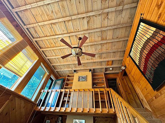 • Ceiling Fan(s), Dining Area, Hearth, Living/Dining, Natural Light, Natural Woodwork, Storage, Vaulted Ceiling(s), Wood Stove Hook-up