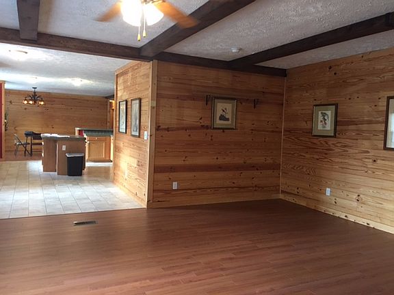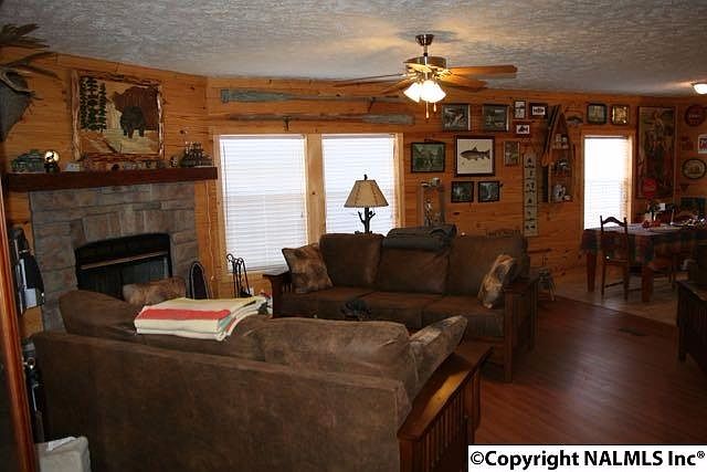 The large, open floor plan makes this home ideal for entertaining. Great flow from living room through kitchen & dining into family room. Home features 1x6 Tongue & Groove knotty pine boards throughout that provides beauty and extra strength to walls that are already built 6" thick. Master bedroom has plenty of storage with two walk-in closets and 2 standard closets. Home sits on over 3 acres and is conveniently located off Hwy 53, minutes from shopping, arsenal, airport. A zone 3 insulation package helps keep energy bills low year-round, ensuring a quiet and comfortable home. It is on a mortared block foundation & meets federal requirements for permanent home. This home is a must see!