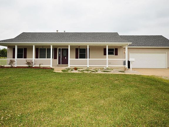 A picturesque property with a beautifully maintained 3 bed 2 bath ranch on 4 acres! This home has an open floor plan with cathedral ceilings. The kitchen offers breakfast bar with bar stools, decorative tile back splash and all appliances are included. The adjacent breakfast room is the perfect size.. The Great Room finishes off the open floor plan with built in bookcases and gas fireplace. The Master bedroom has a walk in closet, master bath and door to outside patio. 2 other bedrooms complete the main level. The unfinished lower level with sump pump is wide open to add double the living space. New siding, roof, gutters in 2015. This property also offers an outbuilding and fencing perfect for horses. Homeowner is offering a HSA Home Warranty. Additional disclosure attached. Agent is related to seller.