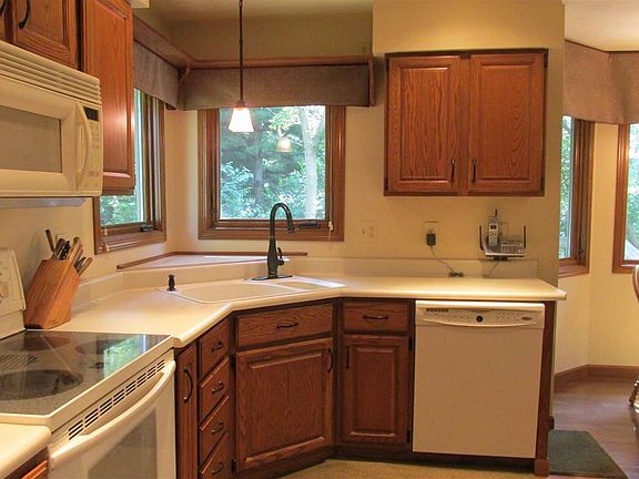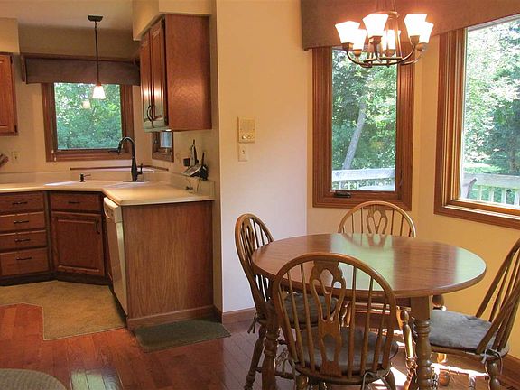 WALKOUT RANCH! This 5 BR, 3 BA ranch has everything you could ask for. Three living spaces, two dining areas and new features galore! Meticulous owners have kept this home in like new condition. Commercial grade roof in 2009, driveway in 2010, Marvin windows in 2013, furnace and AC in 2016, sliding door in 2009, upper deck in 2016, fireplace in 2016, and 3/4 inch oak floors in 2013 & 2015. Lots of oil rubbed bronze hardware and fixtures. Loads of closet space including walk-ins and cedar closet. Security lights and intercom. Beautifully wooded lot with lots of colorful perennials. Located at the end of a one street subdivision backing up to a mature oak grove. Close to schools. HSA Warranty included. MUST SEE! MBR drapes don't stay. Fence transformer doesn't stay.
