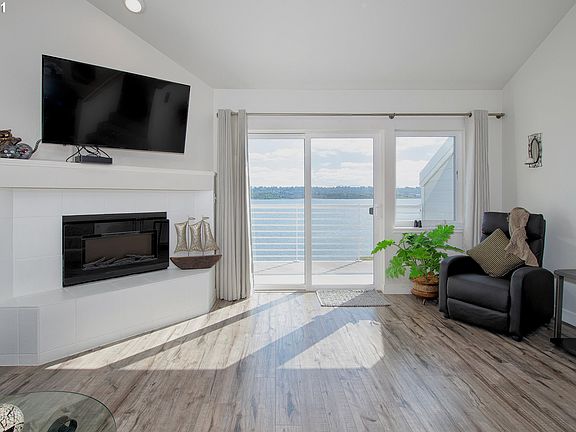 Light & bright turn key top floor riverfront home. Outstanding upgrades & high end remodeling. Plantation shutters & engineered hardwood floors. Soaring 16 ft ceilings w/skylights. Phenomenal amenities incl 2 pools (1 heated, 1 outdoors on the Marina). Black out drapes, water saving toilets, graphite sinks, remote control fireplace & fan. Meeting room, exercise room. Easy access to both Portland and Vancouver. Front row seat for fireworks & Christmas boats! Includes furnishings.