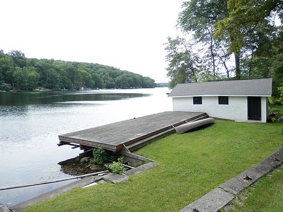 Come and enjoy lake front entertainment on your 100" of lakefront with a dock and boat house for your motorboat (separate parcel). Homeowners enjoy swimming, fishing, water skiing, wake boarding, windsurfing and sailing! Come and enjoy the beautiful views from this home perched above Lake Oscawana with 3 sided breath taking views of the lake and mountains. This home features a large stone fireplace. It would make a perfect seasonal or weekend retreat as well as year round. Just a great place to entertain!! Relax and feel nature at its best! Home needs updating but is a diamond in the rough.