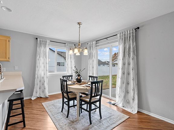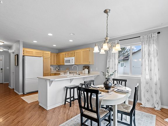 Set in a beautiful neighborhood close to Highland Park and Sandstone School, this modern 2 level, 3 bedroom, 2 bath home with bonus area - offers generous spaces. On the main level you find a convenient kitchen, formal dining area, a half bath, and generous living room complete with laminate hardwood floors and built-in gas fireplace. Love the kitchen with traditional maple cabinetry and sparkling white appliances. Upstairs you find 3 bedrooms, a guest bath, utility closet, bonus office landing, and a primary bedroom with walk-in closet ad en-suite bath. Recessed lighting, 2 inches blinds, newer carpets provide a modern flare. This move in ready home has freshened interior and exterior paint and professional cleaning. Outside you can appreciate the large backyard, with shiny white fencing, and BBQ patio. Call Today!