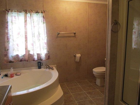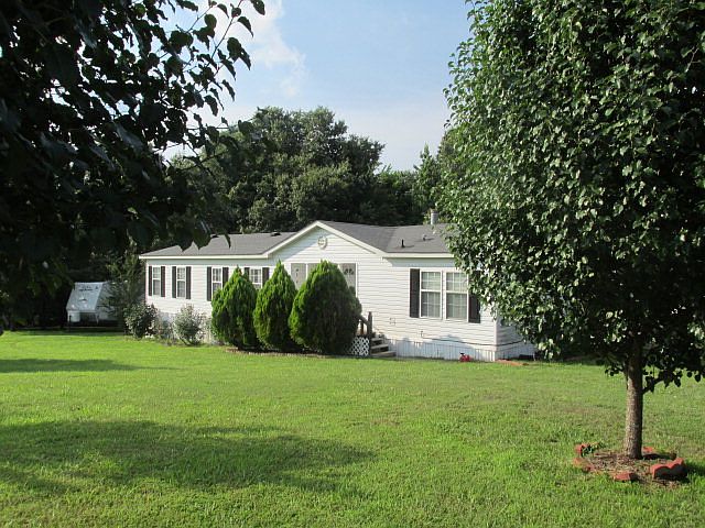This spacious mobile home has nice front porch, back deck, double carport, large kitchen and den area with plantation shutters and gas log fireplace. Nice country setting, beautiful lot, community shared pond located in Pope School District.