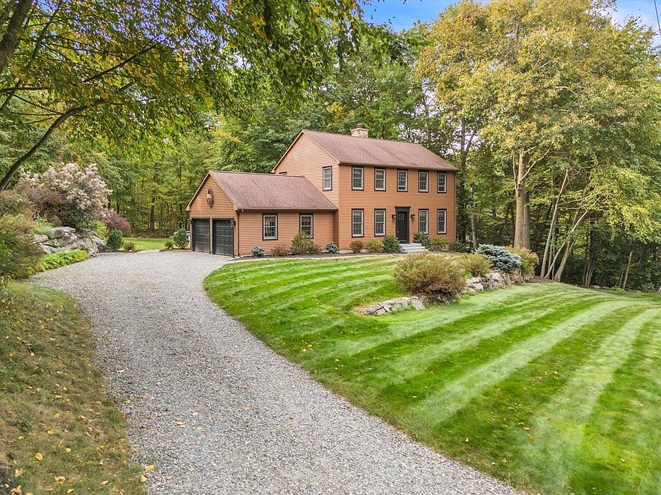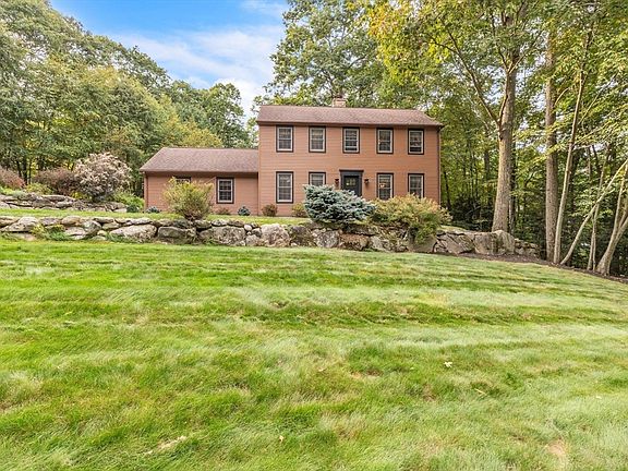 This stately 3 bedroom colonial is tucked away in the desirable Turkey Hill Estates neighborhood of Belchertown! This home has only had 1 owner whose love & care is transparently evident! Enjoy many high-end features like Max Luxury Vinyl Plank flooring in the updated kitchen & bathrooms! HW floors in the LR & DR, a beautifully rustic stone hearth FP, Hinkley light fixtures, surround sound system, Berber carpet in the bedrooms, granite front steps & mailbox, newer Black SS kitchen appliances, upgraded garage with Norsk PVC tiling, Gladiator Metal Cabinets & a Gladiator outdoor Fridge! Home has been freshly painted & the lucky owners will also find a partially finished basement with a large bar & entertainment center that includes a 65" TV with walk-out access. Primary bedroom delights with a big walk-in closet & full en-suite bath! Spend next summer enjoying the beautiful backyard featuring an above ground pool, tiki bar & deck! This house is absolutely perfect & move-in ready!!