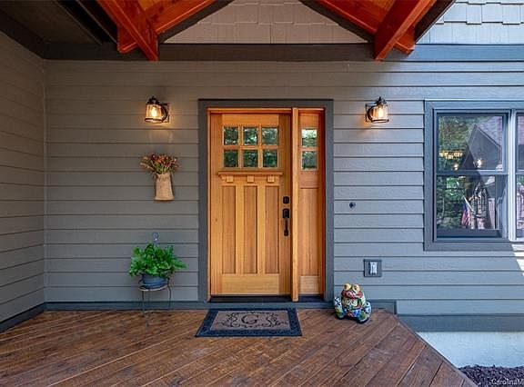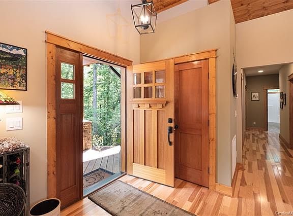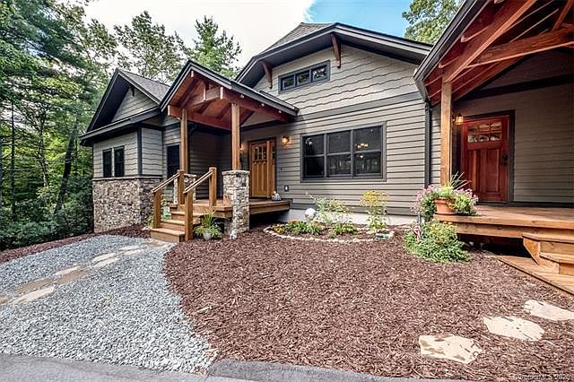 This home offers high end mountain craftsman details, extensive outdoor space to enjoy the incredible views and close access to the best hiking in Connestee Falls. The details of this home create the perfect blend of luxury and mountain living. Highlights include 17 foot wooden vaulted ceilings, a Tennessee Stone wood burning fireplace, granite throughout and hickory floors. The living room and the kitchen flow onto the extensive deck featuring two outdoor areas and a central screened in porch. Pick your favorite place to watch the sun set over Toxaway Mountain, Round Mountain and Bracken Mountain. This gently sloping private half acre lot backs up to the Salola Green space where you will find some of the best hiking in Connestee Falls. After a hike you enjoy a dip in the hot tub and listen to the flowing stream down below. Mountain living does not get better than this. Come see what your life could look like in the natural paradise of Connestee Falls. Watch the Video!
