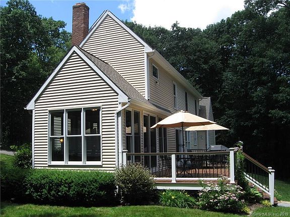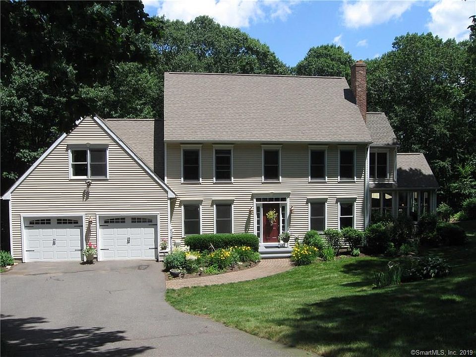 Step inside this outstanding four bedroom custom colonial surrounded by five acres of lavish landscaping that backs up to the woods. This is the perfect house for entertaining with two sliders to the TREX deck plus an attractive paver patio poolside. This home has a gorgeous, inground, heated pool...vacation at home. The open floor plan is ideal for holiday get togethers...the eat in kitchen opens to the dining room, living room with handsome gas fireplace, and beautiful family room which is all windows. Enjoy every season in this incredible home. Upstairs there are four bedrooms and two wonderful full baths. The bonus room is the 4th bedroom (13x19 which has been approved by the town of Tolland building department. The laundry is conveniently located on the main floor in the half bath. There are two good sized rooms in the walk out lower level...a 9x12 craft room and an 11x15 rec room plus a second half bath...easy access to the back yard and pool. The lower level also has a workshop area and excellent storage in the unfinished section. There is a spacious attached two car garage plus a large storage space at the back of the house with a large garage door... perfect for the lawn mower and snow blower. This sparkling clean home is located at the end of a quiet residential street at the end of the cul de sac. Be home for the holidays. Treat yourself...call for a private showing today.