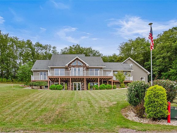 Built in 2012 this one level living rancher could be your dream home! Situated on 1.87 acres just out of town but still close enough to enjoy the amenities like public water, public sewage and natural gas. Inside you will find spaces to make 4 bedrooms work. There is a separate closed off dining area, an office space off the primary suite, open concept living, walk-in pantry, full laundry space, half bath and beautiful views off the the front deck. Full walk out finished basement has a wet bar area, wine storage room, bonus room space, 2 bedrooms, a workout room, and a great storage closet. Out back your will find the privacy of a stone patio with a pad and electrical hook up for a hot tub. Screened in back porch area is great for enjoying a beverage or a reading nook!
