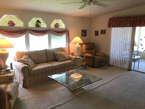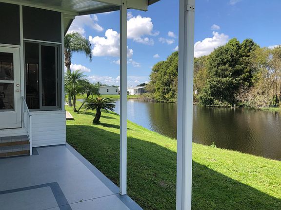 If you are looking for a home that sits on the water with a beautiful view, then this is a must-see home. Two bedrooms, two baths with a large living room and dining room. The kitchen has three windows that overlook the lake. This home is a 1998 Jacobsen with 1288 sq ft of living space with a back lanai and a large back patio overlooking the lake. The air conditioner is 2011, roof 2011, water heater 2008. The lanai is a nice size with sliding durable plastic windows. The outside of the home has a large shed with extra parking beside the driveway for the second car. The Gardens is a 55+ community with a large clubhouse that offers an exercise room, billiard room with 3 pool tables, library, card room, a big ballroom that has an industry size kitchen, a craft room, and a ceramic room with a kiln for firing. The outside of the clubhouse offers an Olympic size swimming pool, hot tub, fire pit, and an outside kitchen. A few of the activities in The Gardens are horseshoes, tennis, Bickle ball, shuffleboard, all types of card games, mahjong, dance once a month with a live band, trips, and many more activities. The lot rent on this home is $886. All listing information is deemed reliable but not guaranteed and should be independently verified through personal inspection by appropriate professionals. Integrity Mobile Home Sales cannot guarantee or warrant the accuracy of this information, measurements, or condition of any property. Measurements are approximate. Lot rent is subject to change.