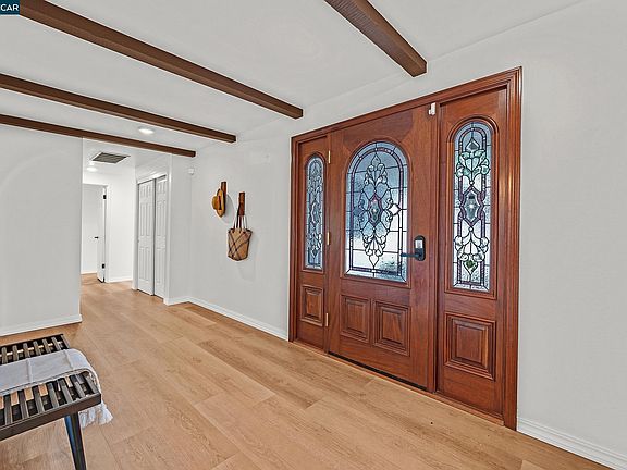 Welcome to this corner-lot Campolindo Beauty in the perfect location close to top-rated schools, trails, and shopping. Step inside to discover a fresh and inviting interior, bathed in natural light. Some of the highlights include an owned solar system with Panasonic panels, fresh paint inside and out, new flooring, updated bathrooms, newer windows, new doors, new AC and heat pump, and an electric car charging station. Enjoy cool winter evenings next to the fireplace in the elegant living room with wood beamed vaulted ceilings. The spacious kitchen features new stainless-steel refrigerator, newer dishwasher and recessed lighting adding a touch of contemporary elegance to the well-appointed interior. The family room, just off the kitchen boasts sliding glass doors out to the backyard and is the perfect place to relax and unwind. Retreat to the elegant primary suite showcasing a luxurious ensuite bath with dual sinks and 2 closets. There are 3 additional spacious bedrooms and an abundance of storage. Enjoy evenings with friends and family in the backyard oasis with patio and new landscaping and sprinkler system. Pick fruit from your very own orchard including apples, pears, clementines, almonds, lemons and wolf berries. Don't miss epoxy floors in the garage and RV parking!