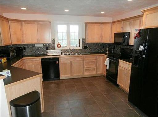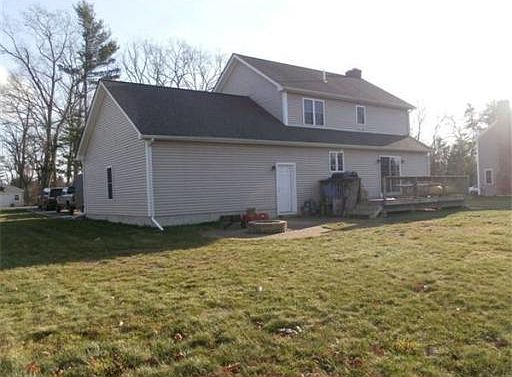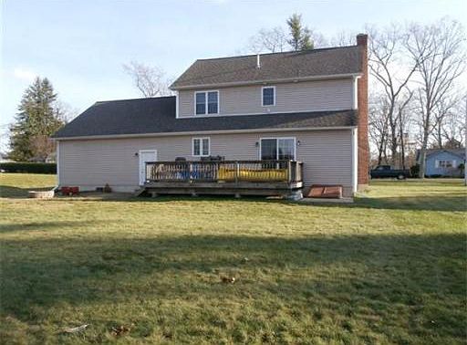 Well built, energy efficient Colonial on nicely landscaped level lot. Spacious kitchen with maple cabinets, breakfast bar, beautiful ceramic tile floor and lots of counterspace. Fireplaced living room, dining room with maple floor and 24' x 27' oversized garage with storage above. 3 bedrooms with 2 baths, walk-in closet in master with separate bathroom entrance. 12' x 20' rear deck off dinette leads to patio/firepit & level back yard. Short walk to playground and ballfield. Town water & sewer
