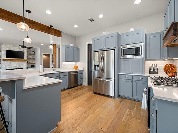 This beautiful custom built home in Pecan Bayou Subdivision consists of 4 Bedrooms, 3 full bathrooms, upstairs bonus room and plenty of room for entertaining. Interior features include custom cabinets throughout, quartz countertops, stainless steel appliances, solid wood floors, foam insulation, custom master shower, and gas fire place. As you enter the back patio, you'll find wood ceilings, an outdoor kitchenette with sink and fridge as well as a custom pool overlooking the pond with fountain. *Owner/Agent