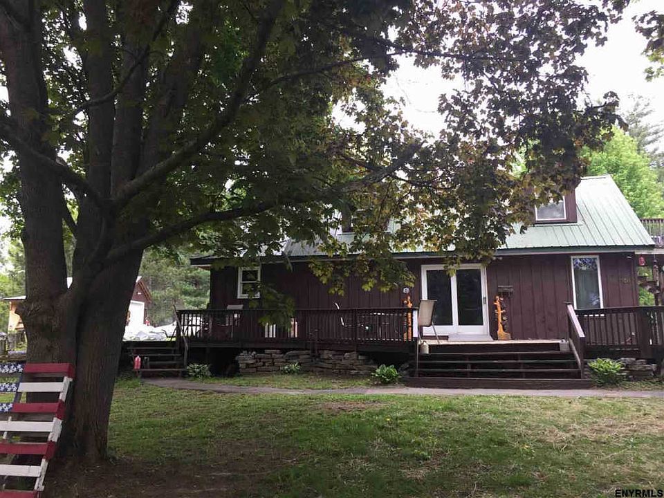 "Sold as is" Use as a summer camp or yearly residence. Lake across the street, must apply for beach & dock rights. Huge deck, 2 bedrooms, 1 bath, country kitchen, great outdoor space and great location!