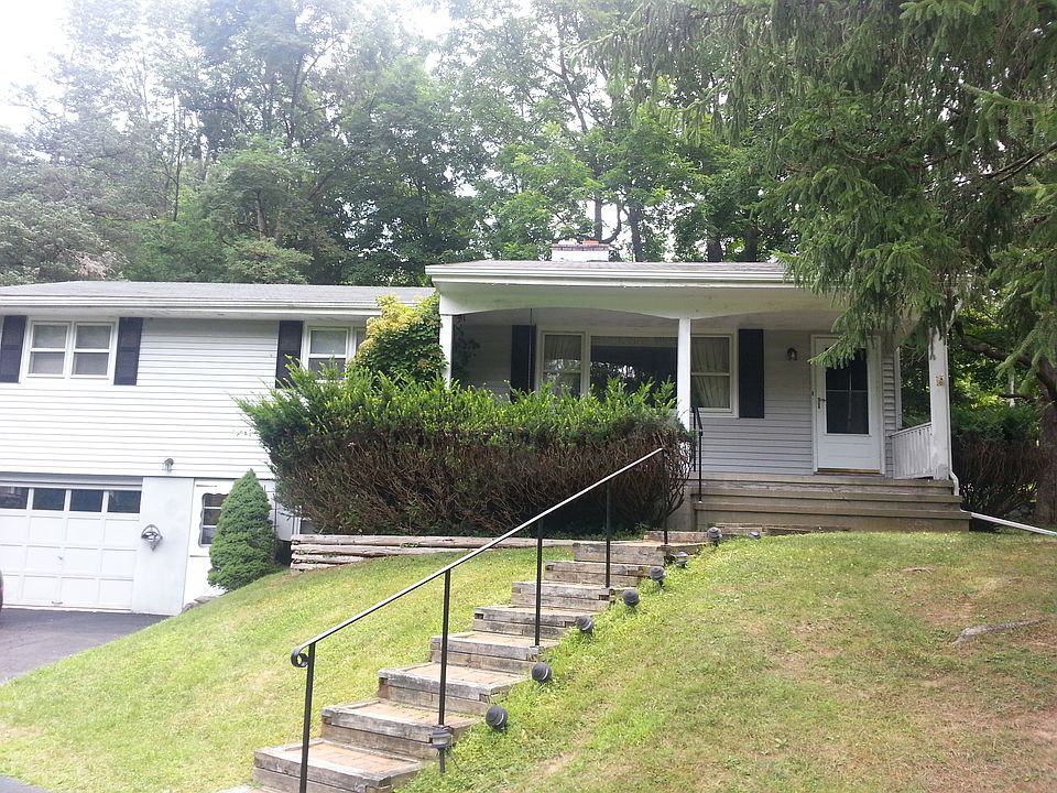 Nestled in a private, park-like setting you can enjoy warm summer evenings from the front porch swing of this ranch style home. Hardwood floors are featured throughout most of the first floor and the spacious living room has a brick, wood-burning fireplace. French doors from the dining room lead to a large family room filled with windows and plenty of natural light. There are sliders from this room to a deck overlooking the beautiful grounds. The kitchen is large enough for a table and chairs with plenty of cabinets, ceramic tile counters and flooring. The master bedroom has a private half bath. The basement is partially finished and has another half bath, storage, laundry and utility rooms. There is a one car garage and storage shed on the property. You will be charmed as you drive onto the property and intrigued by the possibilities of making this your own home.
