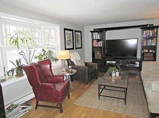 Picturesque country setting behind stone walls for this lovely brick front 3 BR 1 1/2 BA Colonial Gambrel on 2 acres! Lots of character here, starting with hardwoods on first floor, welcoming living room with bright bay window, cozy fireplaced dining room with rustic wall detail and very appealing kitchen with upscale Italian gas range, striking quartzite countertops and freeform walnut breakfast bar! Also first floor laundry, tiled half bath and sliders to sun deck. Second floor bedrooms feature master with hardwoods, double closets and new marble tiled full bath with marble topped vanity! Finished heated basement with 2nd fireplace and brick flooring. two front perennial gardens plus large open back yard with 2 stall barn that backs up to wooded area. All within very easy commuting distance to I 90 and I 84. Must see!