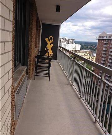 beautifully maintained and bright 18th floor unit with complete wrap around terrace w/east and south views. unit renovated approx. 12 yrs ago., king size mbr w/custom full wall closets, 2 medicine cabinets in master bathrm. 2nd br has built in wall unit., spacious dr w/full wall mirrored closet. ceramic tile flrs in e/h, kit., bathrms. ny express bus at corner, walk to hackensack medical center.out parking space available for $61.00 per month. indoor space, if available is $71.00 per month