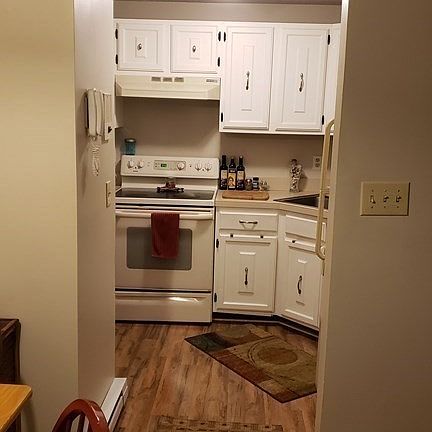 Come see this beautiful, private, End Unit Condo which faces the woods, with slider to deck. Many updates include new flooring , new double insulated glass windows throughout, new baseboard heaters , washer hookup in unit ,recently painted, ample closet space, Large Master bedroom and a kitchen pantry closet in the kitchen. Washer hookup in unit, Two assigned parking spaces "M", professionally managed. Dont wait, Interest rates are rising you know what that means.