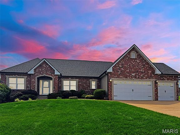 Stunning Brick & Stone front Ranch in Beautiful Subdivision! This gorgeous home offers over 3,800 sq ft of total living space and backs to trees for added privacy. Ideally located just minutes from Hwy 100, Hwy 44, and Washington. Step inside to find a spacious Great Room with soaring vaulted ceilings, a Formal Dining area, and a bright Kitchen/Breakfast Room combo featuring beautiful custom cabinetry and walkout access to the patio and private backyard off breakfast room. The main-level Primary Suite includes a luxurious bath, plus two additional bedrooms, a full Hall Bath, and convenient Main-Level Laundry. The finished Lower Level boasts a large Family Room, Rec Area, Full Bath, and walk-out to a second patio—perfect for entertaining or relaxing. Additional highlights include 9 ft ceilings, oversized 3-car garage, and recent updates: roof, gutters, fascia, 2 windows, and heat pump (all within the past 2 years). This one is a must-see! Coming Soon – Available July 4th or sooner!