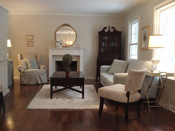 Charm & walk to all amenities in this "pottery Barn" inspired village Cape.3 bedrooms 1.1 baths with easy expansion to 2 full baths.First floor master w bath adjacent!Real HW floors on 1st flr with gas fp in lg living/dining room.Eat in Kitchen with newer ss appliances &new countertops.Wonderful 3 season porch o'looks patio & perennial beds.Full basement partially fin w fam rm.Many improvements & upgrades.2 car garag