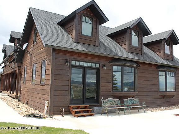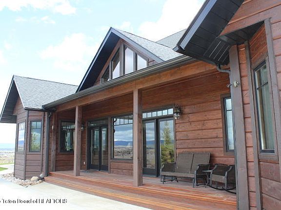 Views...Views...Views! Breathtaking views of the Wind River Mountain Range and the New Fork River below. A very spacious 4,752 sq. ft. home with 4 BR, 5 BA and includes a 1 BR, 1 BA guest apartment in the 1,900 sq. ft. shop/garage. The attention to detail is exceptional! The additional rooms are an exercise room with 8 person hot tub, large game room/family room upstairs, nursery, children's playroom, large pantry and outdoor patio room for entertaining. The oversized 3 car finished,heated garage is perfect for all your cars and recreational vehicles. Beautifully appointed luxury home situated on 10+ acres.
