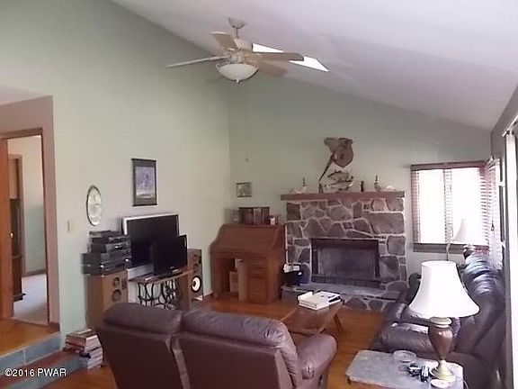 Home features 3 bedrooms, 2 baths, living room with stone fireplace, skylights, and master bedroom on private floor with bath and walk in closet plus deck. Basement offers a family room, laundry area, 2 extra rooms, office/computer area and a work shop/storage room.