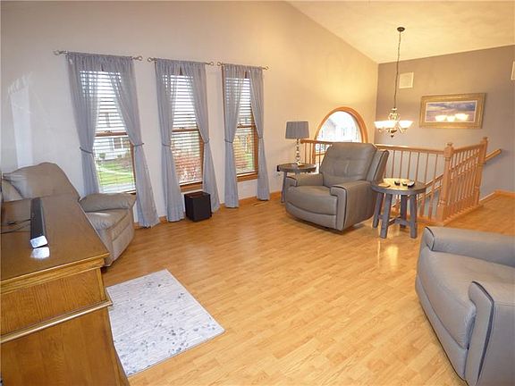 Impeccably maintained offering SO many upgrades throughout! The rambling, wide-open floor plan features soaring cathedral ceilings, skylight and soft recessed lighting. The huge gourmet kitchen showcases stainless steel appliances and gorgeous upgraded raised panel cabinetry stylishly trimmed with brushed nickel hardware. The adjacent dining room features a wood-framed sliding patio door which offers a scenic view of the private backyard and exits to a huge covered Trex deck. The swimming pool with its spacious sun deck completes the picture of an idyllic backyard oasis. Meanwhile, lustrous laminate flooring flows throughout the first floor. Downstairs, the finished family room sports a stunning oak wet bar and pool table. Additional upgrades include the leaded glass entry door and 6 panel masonite interior doors while the maintenance free exterior is further enhanced by the double wide concrete drive, versa lok walls & professional landscaping. You simply MUST see this amazing home!!