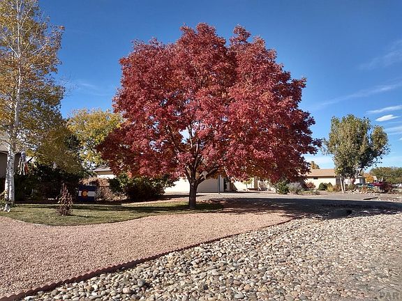 This 5 bed, 3 bath, 2-car garage handsome ranch-style home is situated on nice quiet street on the highly sought-after Pueblo West Golf Course area. This home offers the perfect blend of indoor and outdoor living. It sits on a lot with mature trees and landscaping. It has a drip system in the front and back for the flowers/bushes. This home is perfect for entertaining, with a large patio off of the kitchen, perfect for hosting summer BBQs and outdoor gatherings. You'll find the home tasteful and comfortable with ample storage throughout. The primary bedroom boasts a large walk-in closet and a bathroom that includes a stand alone shower, and a jetted tub for those times you want to unwind. The kitchen features an abundance of beautiful Cherrywood cabinets. You will find the formal dining room next to the kitchen which has a custom-built china cabinet that has a lighting feature that will change colors to add to the ambiance of your dinners with friends and family. This home has impeccable Hickory wood floors along with carpet to make it feel like you are living in luxury. The living room has a beautiful gas fireplace to make the room inviting. The fully-finished basement adds so much to this home. Spacious and open, it enables the opportunity for a theatre room, home gym or game room. It's near walking trails, the Desert Hawk Golf Course, schools, shopping and restaurants. Don't miss out on the opportunity to make this property your own. Call for a showing today!