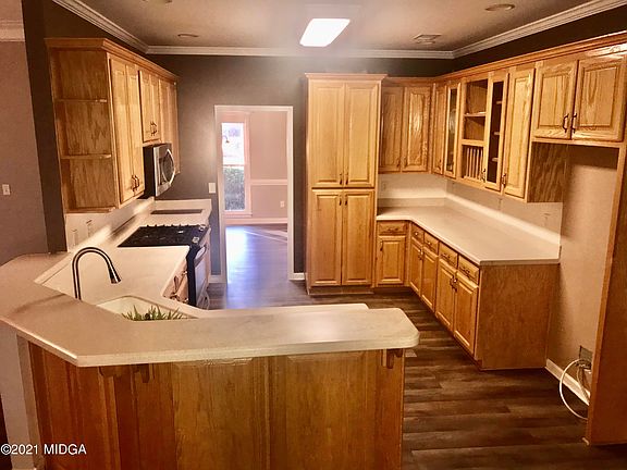 Elegant, All Brick Home w/Bonus Rm on 2.4 wooded acres offering privacy along with convenience to eateries, shopping, & I-75/Hwy 341 for easy commutes. Recently updated with New Roof, all new carpet in Bedrooms and LVP throughout the home. Ceramic tile baths. Kitchen features Corian Countertops, solid oak cabinets with pull out drawer pantry. Crown molding, walk-in closets, oversized 2 car garage, fenced backyard, Circular drive for visitor parking, great place to Call HOME !
