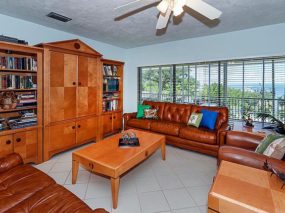 Great opportunity ! This solidly built concrete home features a beautiful Bay View ! Large property including 2 bedrooms, 2 baths upstairs and nice 1 bedroom, 1 bath apartment downstairs. 2 car garage with workshop and 2 screen porches upstairs. Large 100 x 100 lot with very nice sunset Bay views. Private setting in very quiet location at the end of the street.