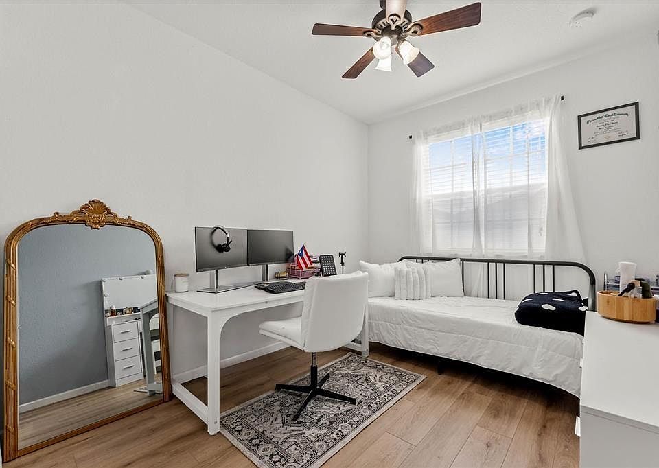 Upstairs, the primary suite offers a walk-in closet and spa-inspired bath, while two additional bedrooms share a well-appointed full bath ideal for family or guests.