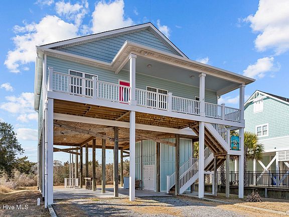 1 of 1 location! Walk to Sailfish Park at the end of your dead end road, stroll to the beach, and frolic in the marsh! Discover the ultimate coastal retreat on Holden Beach Island, offering views of the marsh, Atlantic Ocean, and Intracoastal Waterway. This newer custom-built home is perfectly positioned with protected marshland on the left and rear, ensuring uninterrupted vistas of stunning sunrises and sunsets. The property is located just moments from a peaceful park with picnic areas, where watercraft glide along the ICW.