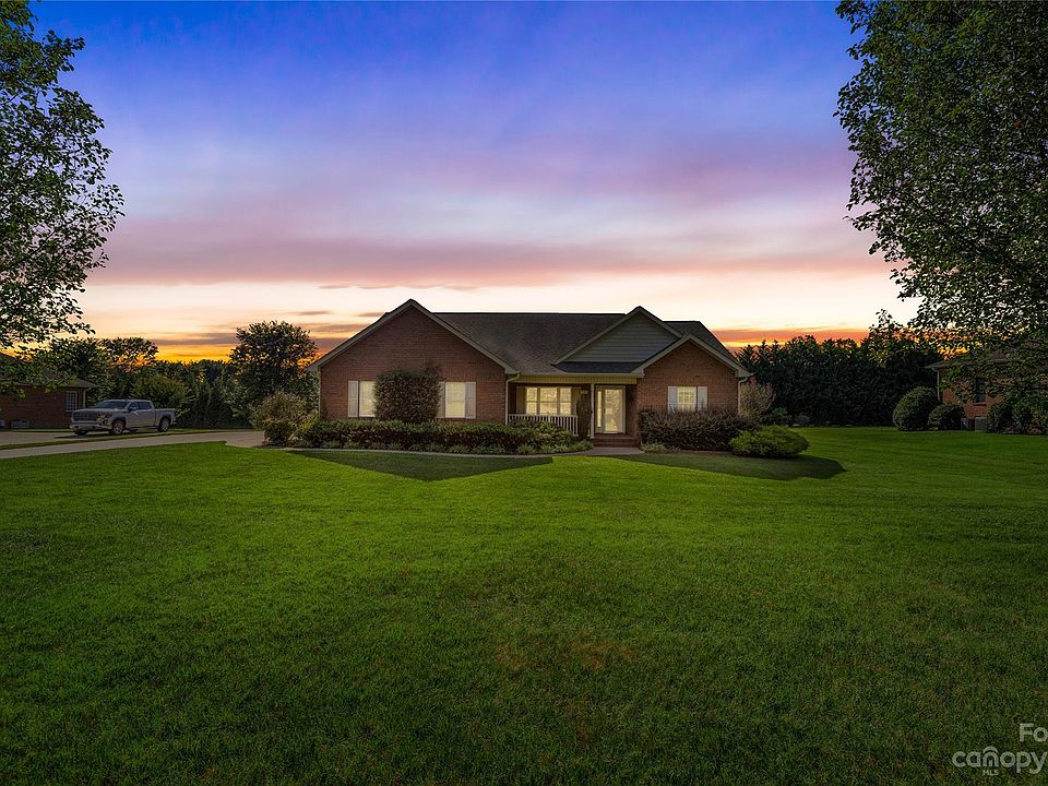Welcome to this charming 3-bed, 2-bath home in Statesville, NC! This full-brick ranch home sits on a spacious, flat lot conveniently located to I-77 and I-40. With three generously sized bedrooms, there's plenty of space for all your needs. The master suite offers 2 walk in closets and an ensuite bathroom with his and her sinks. Big windows allow you to view the beautiful country setting from each room. Enjoy a spacious living area with an open floor plan, stacked-stone fireplace, and vaulted ceilings. Your morning coffee will taste better on the private covered back porch. The oversized garage has enough room for vehicles and toys! The space in the garage attic offers additional storage. Your new chapter starts here! Sellers are offering a 2-year home warranty provided by America’s Preferred Home Warranty. Don't miss the opportunity to make Sain Road your forever home!