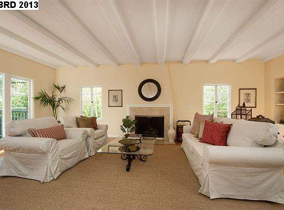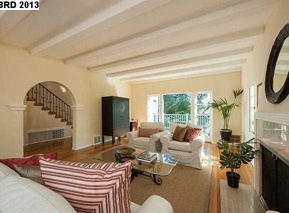 Gracious Mediterranean designed by Newsom and Newsom. Formal rooms open to sunny decks: living room with fireplace and beamed ceilings, formal dining room. Updated kitchen with adjoining breakfast room. Four bedrooms and three baths on upper level; large rec room and office space below..