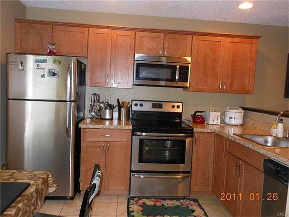 Absolutely beautiful clean unit. whole kitchen is redone couple of years ago including tiles, stainless steel appliances, granite counters lights/ceiling fan. Living room is open with dinning room. living room with fireplace and sliders to private deck just serinity peaceful place to have cup of coffee. Master bedroom pstairs has vaulted celing and wall to wall carpets. second bedroom has laminate floors, walk in clsoet, ceiling fan. Lower leve has plent of storage space. Hot water heater is only year old. All windows and sliding door replaced in 2009.