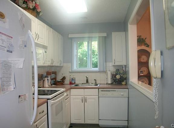 Light, bright, clean 1BR updated condo. Laminate wood floors, tile, fireplace, end unit. Newer kitchen, bath, storm windows, slider and stairs. One-car garage. This is the only one-BR unit in the complex that has an office in the basement wired for sound. Quiet complex with low taxes and common fees! Why pay rent?? Nothing to do but move in. Hurry!
