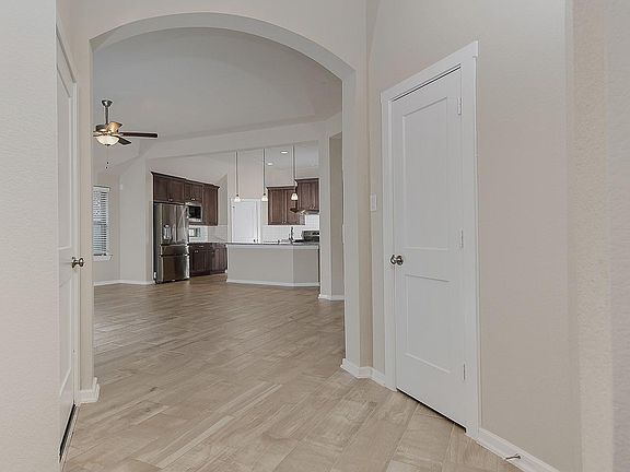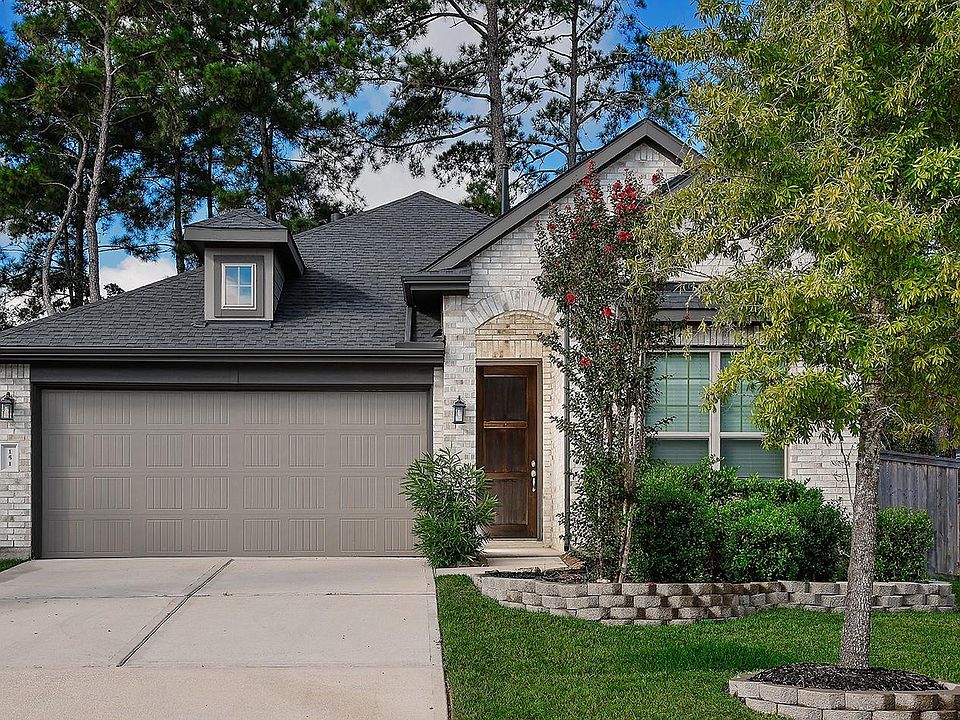 Desirable single-story home perfectly located in the front section of The Woodlands Hills! Lawn maintenance, washer, dryer & refrigerator are included for your convenience. This beautifully appointed 3-bedroom, 2-bath residence features a dedicated home office w/closet ideal for remote work, study, or use as a 4th bedroom. The open-concept design flows seamlessly through the main living areas, enhanced by elegant wood-look tile flooring. The spacious kitchen overlooks the family & breakfast rooms, creating an inviting space for everyday living or entertaining. The private primary suite offers a luxurious retreat with dual vanities, a soaking tub, a large walk-in shower & a walk-in closet. Step outside to enjoy a covered patio & spacious yard perfect for relaxing or hosting friends. Nestled within a vibrant master-planned community featuring 17 acres of parks, 20 pocket parks, resort-style pools, a lazy river, playgrounds, dog park, fitness center & tennis courts.