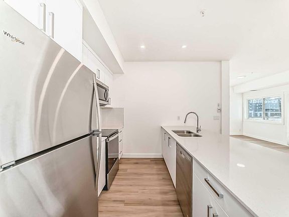 Brand new 3 bedroom corner townhouse ideally located across from a school with convenient street level amenities! Modern and sophisticated this 3 bedroom and 2 bathroom home has a unique layout for ultimate privacy and 2 large outdoor spaces including a rooftop patio! The main floor is open and bright with abundant natural light, wide plank flooring and a neutral color pallet. Inspiring culinary creativity, the kitchen features full-height cabinets, stainless steel appliances and a breakfast bar on the peninsula island. Centring the open concept space is the dining room with clear sightlines encouraging unobstructed conversations. The living room promotes relaxation or head out to glass glass-railed covered balcony for casual barbeques and time spent unwinding. A two large size bedroom, a full bathroom, in-suite laundry and a storage room are also on this level. The upper level is a luxurious escape with a separate entrance. Gather in the bonus room for movie and games nights. Impress your guests on the gorgeous rooftop patio and enjoy the rare bonus of having two separate outdoor spaces. Spacious and bright with no neighbours above, the primary bedroom is a true owner's retreat with a walk in closet that lead to the second entrance to the unit. Underground parking further adds to your comfort and convenience. Located in Skyview Ranch surrounded by big prairie sky pierced with city skyline and every amenity: shopping, schools, parks and a multitude of green spaces and pathways are right your door! Truly an unbeatable location for this exceptional unit with a perfect floor plan!
