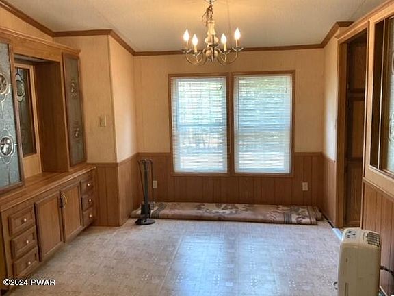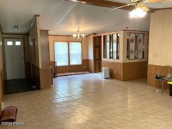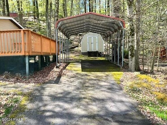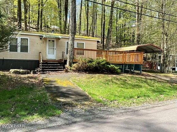 Roomy 3 bedroom/2 bath doublewide mobile home with lake rights to Lake Wallenpaupack. Short term rentals are allowed in the community. Eat in kitchen with newer appliances as well as a dining room with a built-in china cabinet. The community features 2 outdoor pools, basketball, tennis, clubhouse, central water and sewer. This would be a great full time, vacation or short term rental home. Carport with paved driveway and shed included. Home is being sold ''as is''.