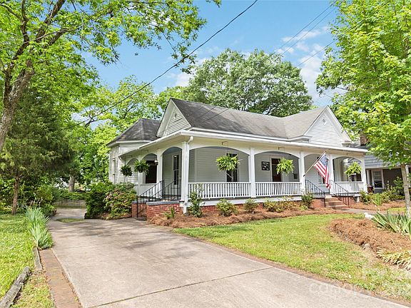 Beautiful Queen Anne frame cottage built by A.H. Propst in 1890, a home in Downtown Concord’s Historic District. Enjoy your evenings on the large wrap around front porch or on the oversized back deck overlooking the private yard. Oversized foyer entrance. Spacious updated kitchen with island next to the large den/sunroom, oversized bedrooms (one bedroom is large enough to hold 2 king beds), large dining room, crown molding, large baseboards, hardwood floors, wide doorways, and high ceilings. Light, bright, and airy rooms. 4BR and 2 full baths. 4th bedroom could be used as an office. Basement with large 2 car garage and extra storage area. Enjoy pecan trees, fig trees, azaleas, camellias, and rhododendron in the yard. Take a short trip to get coffee, check out a library book, grab a meal or a drink in Downtown Concord as it is being revitalized. Enjoy the nearby Greenway and don’t miss the chance to grab the living history in this beautiful home.