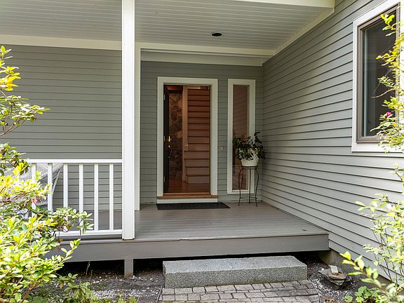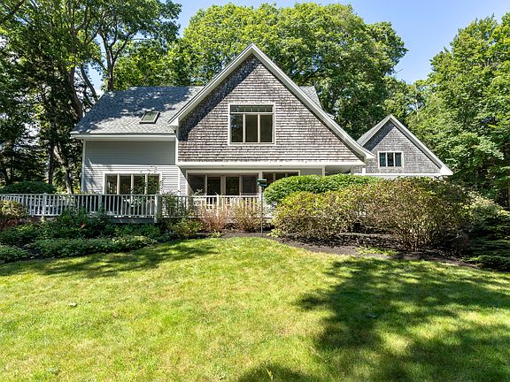 Nestled on Cousins Island in Yarmouth, Maine, this coastal contemporary home is set on 2.8 private acres. The property is buffered by mature trees and offers peekaboo views of the ocean and Casco Bay throughout the year. A deeded right-of-way leads to a nearby pebble beach, offering a perfect spot for recreation. It also includes a transferable granite mooring. The spacious home boasts open and flexible living spaces with large windows that allow natural light to pour in, offering views of the beautifully landscaped yard. The kitchen, dining, and living rooms are thoughtfully designed, with the informal dining area featuring beamed ceilings and doors that open to a wrap-around deck. A centrally located fireplace serves as a grand focal point, adding warmth and character, while wood floors throughout much of the main level create a seamless flow. The kitchen features a center island with seating, granite counters, and ample cabinet space, including some with glass doors for displaying decorative items. A first-floor bedroom offers convenience, making it ideal for both residents and guests. The second-floor primary suite provides a wonderful space to get ready, featuring a walk-in shower, jetted tub, dual sinks, and a walk-in closet. A large bonus room over the garage provides additional space for living or entertaining, while two more bedrooms are located on the second floor. The expansive yard, surrounded by mature trees, offers a serene outdoor space perfect for relaxation and entertaining. Located in a highly coveted private neighborhood, the home is just 15 miles from Portland, known for its vibrant dining scene. With easy access to Southern Maine's finest boating waters and the renowned Yarmouth school system, this property provides a perfect blend of luxury, privacy, and convenience for those seeking an exceptional coastal lifestyle.
