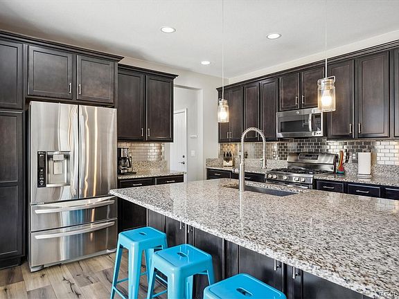 Gorgeous home situated in the heart of Erie in the desirable Colliers Hill community * Beautifully appointed with mountain views and a finished basement * The main floor features an open and inviting floor plan, wood floors, large windows, a gourmet kitchen, living room, dining room, mud room, and laundry room * The kitchen features stainless steel appliances, granite counters, and wood cabinets * The living area opens up onto the expansive patio that's ideal for outdoor entertaining * The second floor hosts the primary bedroom with en-suite bathroom, 2 additional bedrooms, a bathroom, and a loft/flex space that's ideal as an office, game room, or exercise room * The finished basement serves as the 4th bedroom with bathroom and storage areas. Easily add a divide to create a family room in the basement * Additional features include a 2 car garage, central air, and a landscaped yard * The community features a pool, fitness center, and clubhouse * Easy access to trails and parks * Newly installed roof * Fantastic location!
