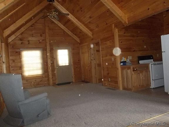 Cute 3 bedroom 1 bath log home in Chugwater has over 1,200 sq ft of living space. Many handicap features with an open floor plan. This home is very private and sits on a 28,750 sq ft lot with a 2 car attached garage. The down stairs is plumbed for another bathroom. Built is 2006, this home is offered at $140,000. Easy to show, give me a call.