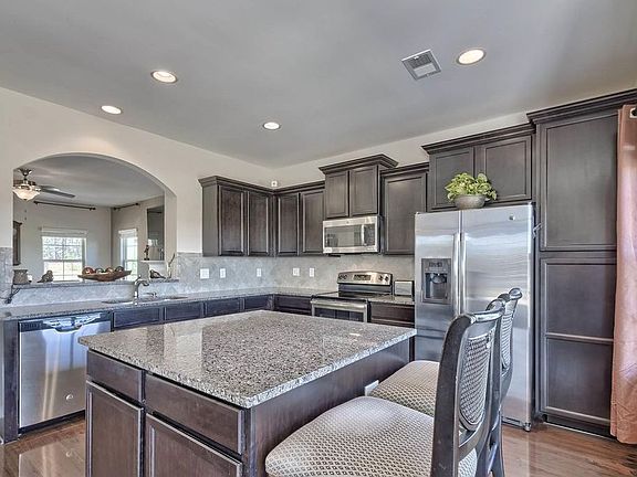 Open floor plan just like the Langford model! This 5 bedroom, 2.5 bath home has a great open concept with great room flowing into the kitchen. The great room features hardwood floors, gas fireplace and 9 foot ceilings. The floors continue into the kitchen and features a beautiful, bright sun room, that also makes for a great dining room. The extra room downstairs can be made into an office area or a 5th bedroom! Moving upstairs, the home features a box oak wood staircase and 3 secondary bedrooms, with a huge Master Bedroom and attached sitting area. There is a bonus sun room upstairs that is great for a playroom, lounge room, or office. Backyard is huge and private and features extended patio and new pool with wrap around deck and lots of privacy! 100% financing available! Better than anything currently available for the price, it will not last long!