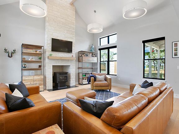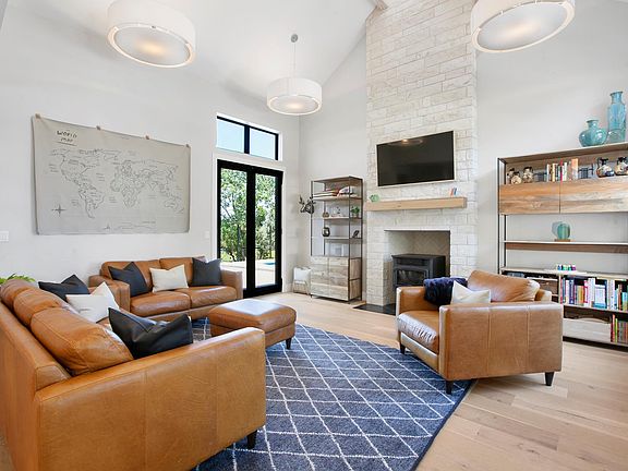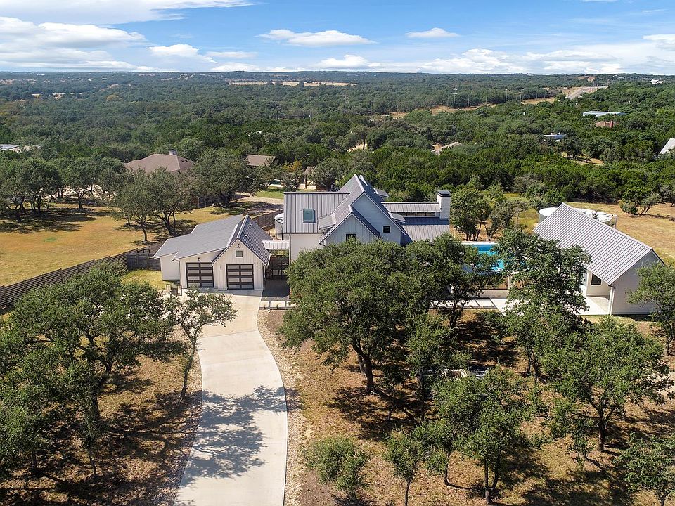 151 Terra Scena Trail is a recently completed & highly customized 4 bedroom/3.5 bathroom Modern Eco-Farmhouse w/ a spacious pool, spa, and full guest house (added by original owner) situated on over an acre corner lot w/ towering live oaks & natural landscaping. Perfectly located in between downtown Dripping Springs & Bee Cave within the sought after Terra Scena community w/ 9 acres of private trail access, this home offers ample space, privacy & hill country views while still being accessible and connected. The main home is a standout w/ wide-plank white oak flooring & natural light, featuring custom automated window treatments throughout the home. The living & entertaining space on main level is accented by super-high ceilings w/ a native stone fireplace facade built to the very top. The primary suite on the first floor contains ample closets, a double vanity & a soaking tub & rainwater shower. The outside flows effortlessly into the interior w/ the massive pool & separate spa just steps away that is plumbed for an outdoor shower as well. Adjacent to the pool & spa, the guest house encompasses not only a full bedroom and bathroom, but is plumbed for a kitchenette & living space as well as lofted living space above so that your guests feel at home & taken care of in their own space. The connected garage will not only allow two full-size cars, but also can be accessed by a side-loading bay with an attached workshop. The entire property runs on rainwater collection (30K gallon tank) & is optimized to be extremely energy efficient and eco-friendly, w/ all electric on site, including an induction range, solar and EV pre-wiring, multi-zone optimized HVAC, and more. A very short drive from the Hill Country Galleria and all of the incredible new restaurants & entertainment including Fitzhugh Rd. breweries, distilleries & wineries.