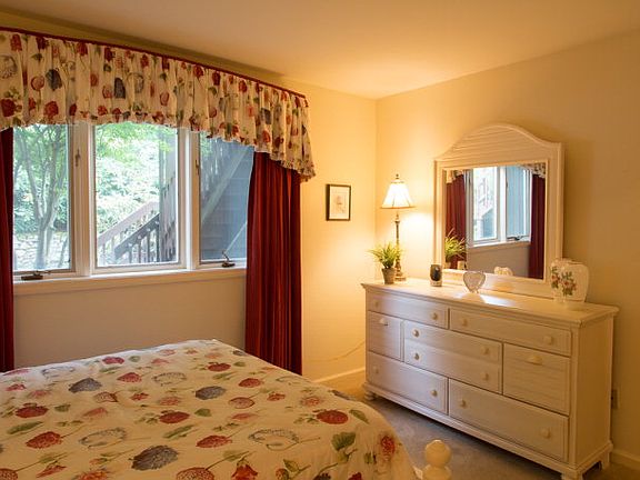 LEVEL ENTRY into this lovely and spacious two bedroom two bath condo with lots of extra features. The living room has a stone fire place with gas logs and access to the wrap around covered deck that is nestled in the green rhodendrons for year round privacy. The kitchen offers a sweet and cozy breakfast nook with access to the deck also. This condo comes FURNISHED AS SHOWN and can be available immediately. This condo is conveniently located in walking distance to Main Street and the BASS LAKE with miles of trail in the National Park. Excellent parking and easy access to this unit.